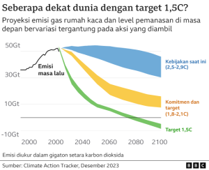 Sekarang telah dikonfirmasi bahwa pemanasan global telah melebihi 1,5C selama periode 12 bulan antara Februari 2023 hingga Januari 2024. Hal ini menyebabkan tahun 2023 dinyatakan sebagai tahun terpanas dalam catatan sejarah.