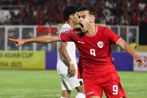Jens Raven sedang melakukan selebrasi seusai mencetak gol dalam laga Kualifikasi Piala Asia U-20 2025 antara timnas U-20 Indonesia versus timnas U-20 Yaman di Stadion Madya, Senayan, Jakarta, Minggu (29/9/2024) malam. (MUHAMMAD ALIF AZIZ MARDIANSYAH/BOLASPORT.COM)