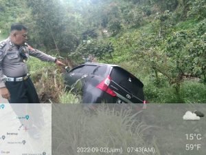 KARODAILY.id, Berastagi – Gugup lewati longsoran Bubusan Kobra, Jalan Kenanga, Berastagi, satu unit mobil minibus dengan nomor polisi BK 1528 LAC terperosok masuk kedalam jurang, Jumat (02/09/2022) sekira pukul 07.30 WIB.