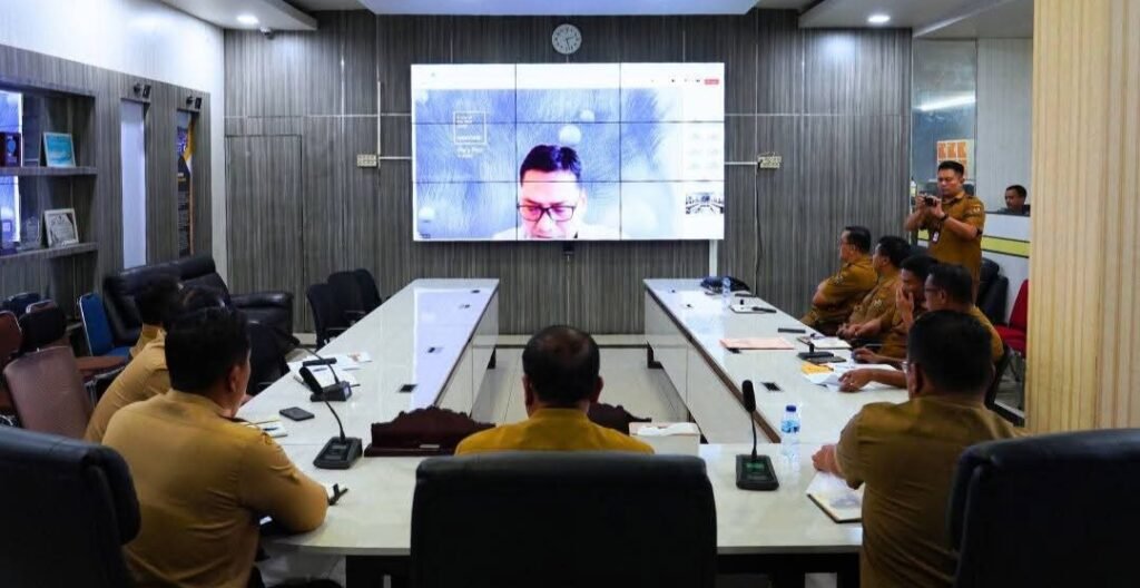 Rapat koordinasi berlangsung secara virtual dengan tujuan menyamakan pemahaman, melakukan sinkronisasi program, serta merumuskan langkah tindak lanjut pembangunan wilayah.