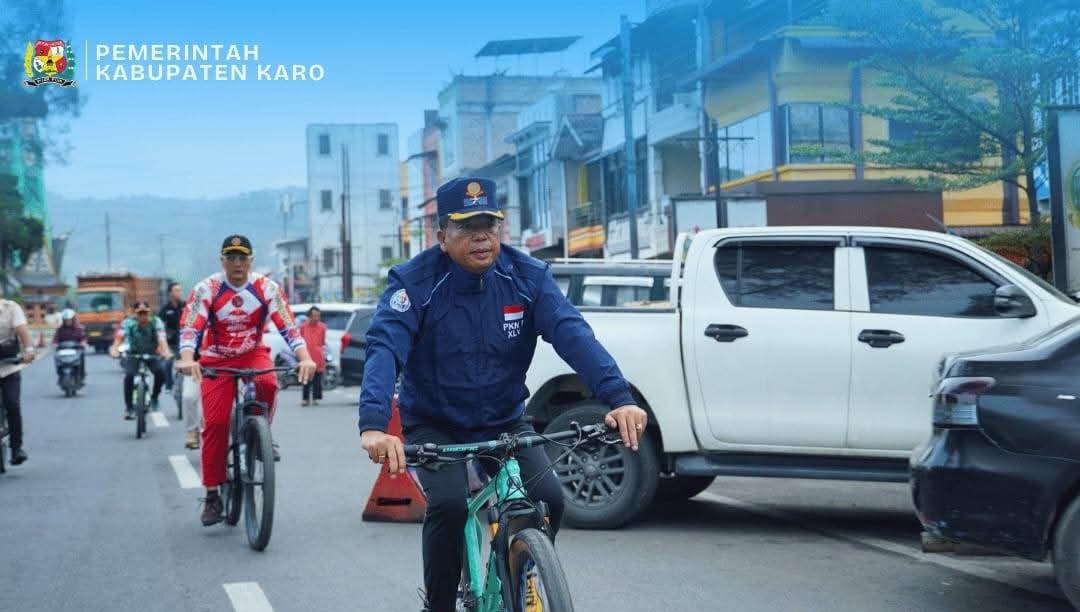 Kegiatan yang berlangsung Jumat (17/04/2026) ini dimulai dari kawasan Berastagi Cottage menuju Kantor Bupati Karo, dan diikuti langsung oleh Bupati Karo Brigjen Pol (Purn) Dr. dr. Antonius Ginting, Sp.OG., M.Kes., Wakil Bupati Komando Tarigan, serta Sekretaris Daerah Gelora Kurnia Putra Ginting bersama jajaran ASN.