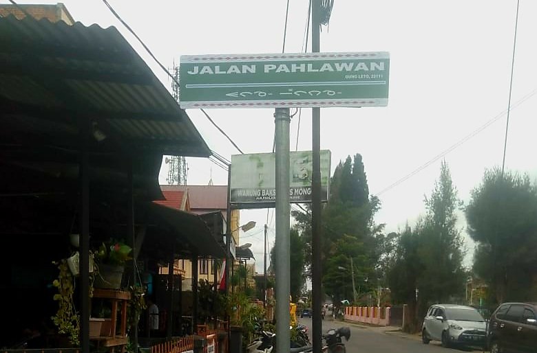 Tulisan Aksara Karo di ruas jalan yang ada di Kota Kabanjahe dinilai merupakan perwujudan dari semangat melestarikan budaya daerah.(ist)