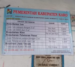 Pemberlakuan kenaikan tarif retribusi daerah sebagaimana tercantum dalam Perda Kabupaten Karo No 01 Tahun 2024 juga disampaikan pedagang di kawasan Pusat Pasar Berastagi.