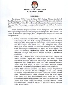 Rilis media KPU Karo terkait bakal calon bupati dan wakil bupati Karo dari jalur perseorangan.(ist/@kpu_karo)