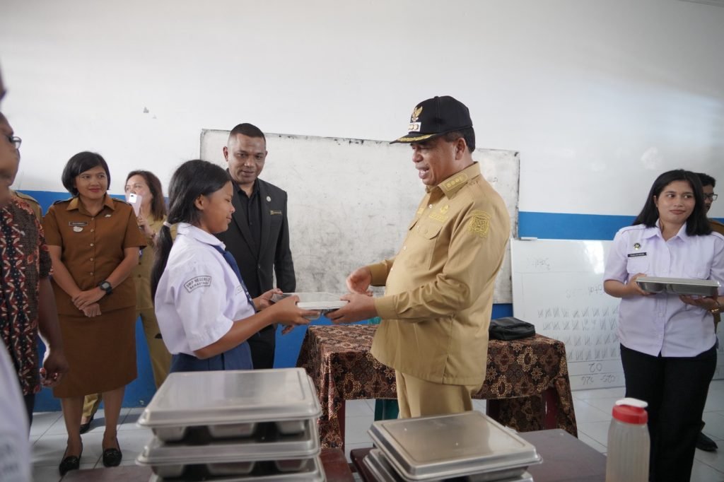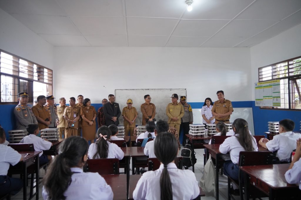 KARODAILY.id, Berastagi – Bupati Karo Brigjen Pol (P) Dr.dr. Antonius Ginting,Sp.OG,M.Kes, Senin (14/07/2025) hadiri launching program nasional Makan Bergizi Gratis (MBG) di Sekolah Menengah Pertama (SMP) Negeri 2 Berastagi. Bupati Karo Antonius Ginting berharap pemenuhan gizi kepada para pelajar lewat MBG dapat menjadi stimulus lahirnya generasi emas Karo di masa masa depan.