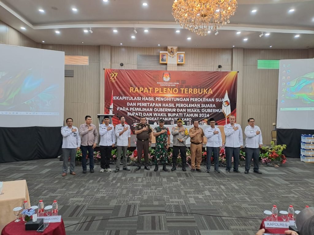 KARODAILY.id, Berastagi –Rapat Pleno Terbuka Rekapitulasi Penghitungan Perolehan Suara dan Penetapan Hasil Pemilihan Gubernur/Wakil Gubernur Sumatera Utara dan Bupati/Wakil Bupati Karo tingkat Kabupaten Karo, Senin (02/11/2024) pukul 09.00 WIB resmi dibuka di Sinabung Hill Resort, Berastagi.