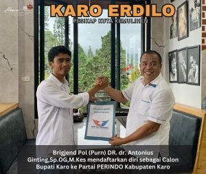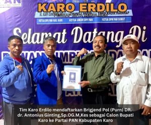 KARODAILY.id, Kabanjahe – Bakal calon bupati Karo Brigjen Pol (Purn) Antonius Ginting kembali serahkan berkas pendaftaran ke partai politik. Terbaru, Antonius sambangi DPD Partai Perindo dan DPD Partai Amanat Nasional (PAN) Kabupaten Karo. Langkah politik Ginting ini mencatatkan dirinya sebagai satu – satunya Bacalon bupati yang mendatangi semua parpol peraih kursi di DPRD Karo.