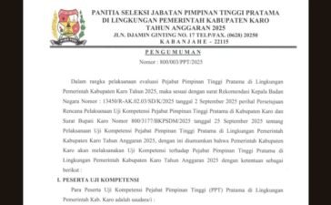 FokusJurnal KabupatenPemkab Karo Mulai Gelar Uji Kompetensi 23 Pejabat Eselon II, Ini Jadwal LengkapnyaredaksiOctober 5, 2025
