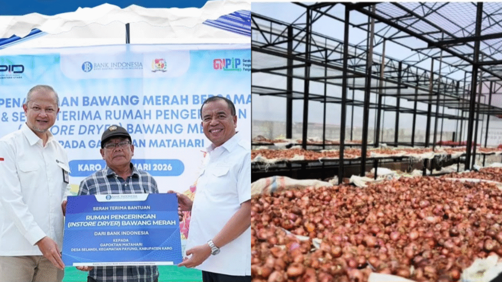 “Produktivitas bawang merah di Karo relatif baik, namun nilai ekonominya sering tergerus akibat pengelolaan pascapanen yang belum optimal. Pengeringan yang tidak terkontrol menyebabkan susut hasil tinggi, mutu menurun, dan posisi tawar petani melemah. Instore dryer ini berfungsi menjaga kadar air umbi pada level ideal, menekan serangan patogen, serta memperpanjang umur simpan sehingga nilai jual meningkat,” ujar Bupati, sebagaimana dilansir dari akun media sosial resmi Pemkab Karo.