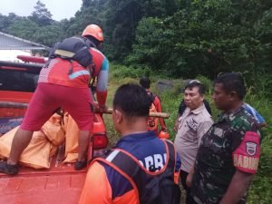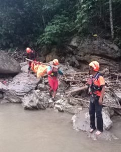 Setelah berada di lokasi aman, jenazah lantas dibawa dengan menggunakan kenderaan SAR menuju kediaman korban di Desa Kemkem,Kecamatan Tiga Binanga.